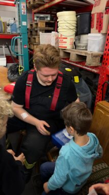 Von dem großen Glück, Julian Grube als FSJler für ein halbes Jahr bei uns im Kindergarten zu haben, profitierte natürlich auch der 6-er-Club. Julian – aktiver Feuerwehrmann – hatte beste Beziehungen und dank ihm, hatten wir die Möglichkeit, uns einen Krankenwagen vom Deutschen Roten Kreuz aus allernächster Nähe anzusehen. Dank seinem ehrenamtlichen Engagement in der Kinder- und Jugendarbeit der Feuerwehr konnte er den Kindern die Technik das Fahrzeuges kindgerecht vermitteln. Viele Fragen wurden gestellt und ausführlich von ihm beantwortet. Mit großem Interesse wurde alles in Augenschein genommen und bestaunt. Jedes Kind konnte den Umgang mit einer Einwegspritze ausprobieren. Mit Blaulicht und Sirene verabschiedete sich das Krankenwagenteam von uns. Viel zu schnell ging dieser interessante Vormittag vorbei.