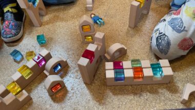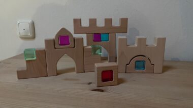 Gleich drei komplette Holzbaukästen vom Bausystem Sunnysue „Regenbogen Stadt“ durften wir dank der tollen Unterstützung durch den Förderverein für unseren Bauraum anschaffen. Die hochwertigen Holzbausteine aus massiver Buche mit farbigen, transparenten Acrylsteinen vereinen Kreativität und Fantasie miteinander. Häuser, Schlösser sogar ganze Städte können mit den verschiedenen Formen und Größen der Bausteine entstehen. Die grenzenlose Kreativitätsmöglichkeiten der Steine regen Kinder dazu an, eigene Bauprojekte zu entwerfen und umzusetzen. Durch die verschiedensten Konstruktionsmöglichkeiten werden zusätzlich die Feinmotorik und das räumliche Vorstellungsvermögen gefördert.